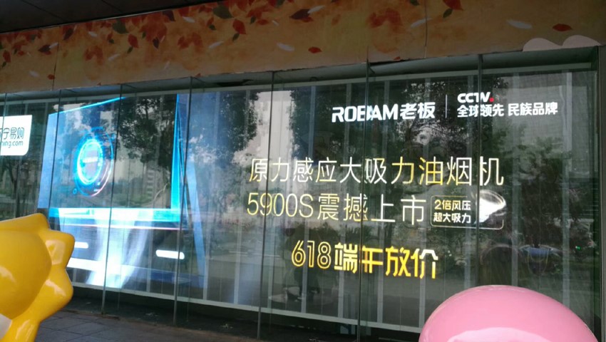2018年5月,我公司與蘇寧云商集團(tuán)股份有限公司合作,安裝完成蘇寧生活廣場(chǎng)上海五角場(chǎng)試點(diǎn)一塊面積30平方米的P3.9*7.8規(guī)格的LED透明屏。